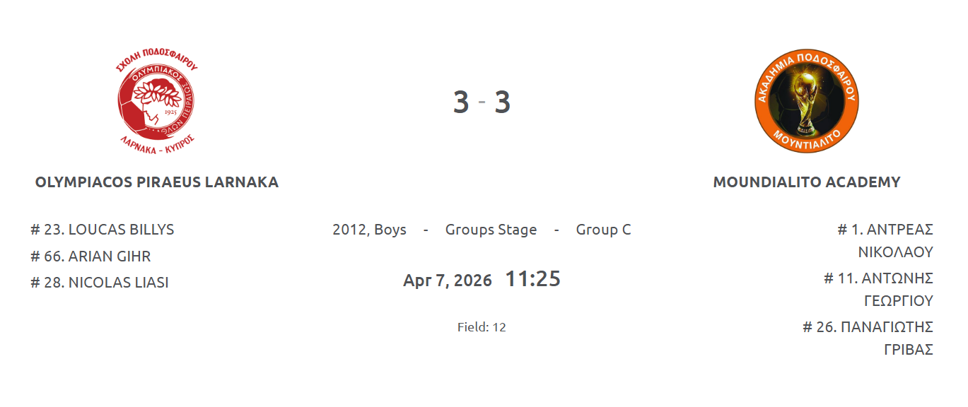 I Olympiacos Piraeus Larnaka vs. Moundialito Academy